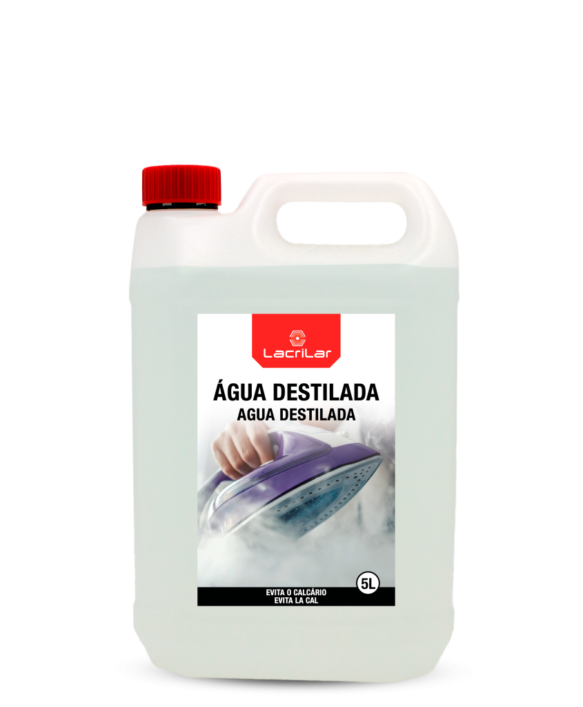 A Água Destilada Lacrilar é um líquido isento de minerais e outras impurezas, composta unicamente por moléculas de H₂O, sendo indicada para múltiplas utilizações onde a eliminação do calcário e de resíduos minerais é essencial. É amplamente usada em radiadores de veículos, baterias, ferros de engomar, laboratórios, aquários, cosmética e limpeza de precisão.