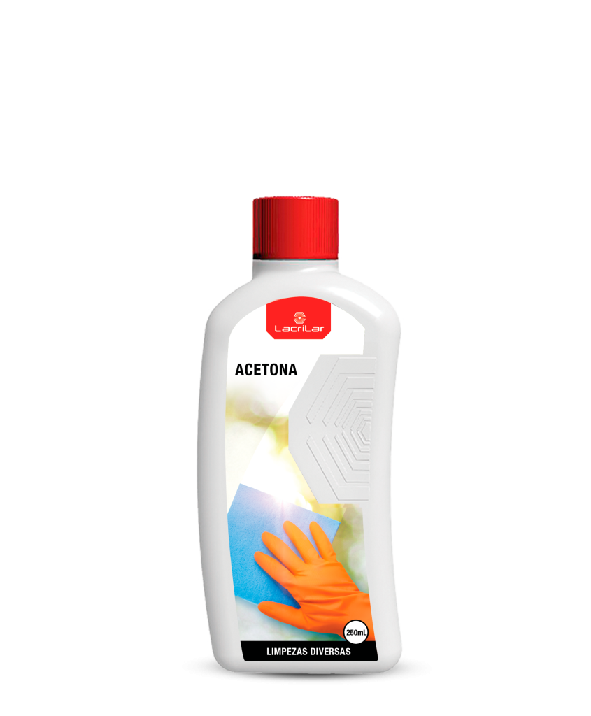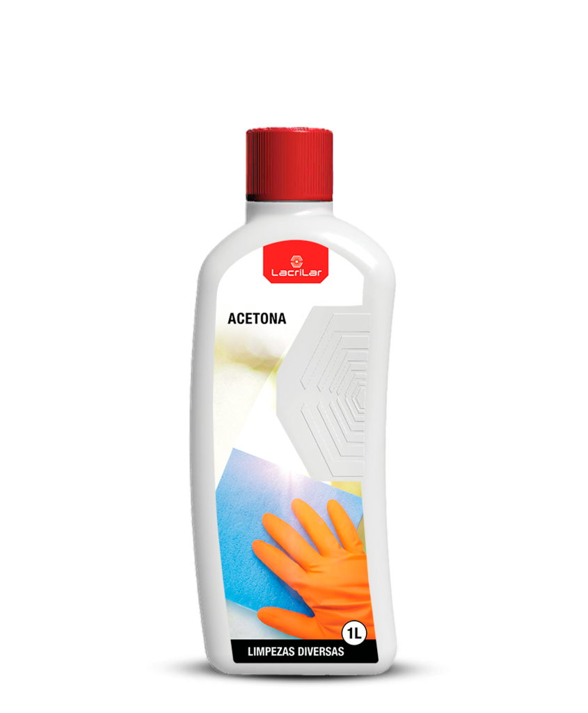 A Acetona Lacrilar é um solvente puro de elevada volatilidade, amplamente utilizado na limpeza e secagem de superfícies de vidro e na remoção de manchas difíceis em tecidos, como nódoas de óleo, cera, alcatrão, gordura, tinta e colas. Devido ao seu elevado poder de dissolução, é indicada para uso técnico, profissional e doméstico.